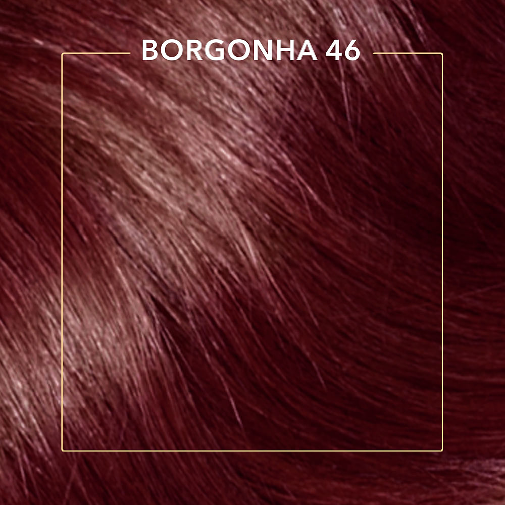 A Tinta de Cabelo Koleston Borgonha 46 é de fácil aplicação e cobre perfeitamente os fios brancos. Sua fórmula possui o exclusivo Tratamento Gloss Intenso que atua como uma barreira de proteção no cabelo para deixa-lo com mais brilho e maciez, ajudando a manter a intensidade da cor. Além disso, o kit conta também com o Reativador de Cor que deposita mais pigmentos no seu cabelo para ajudar a reaver a cor, depois de 15 dias da aplicação da tintura.